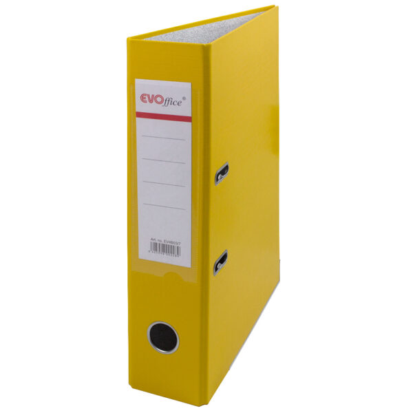 Biblioraft carton plastifiat cu margine metalica, buzunar plastic, A4, 7.5 cm EVOffice – galben