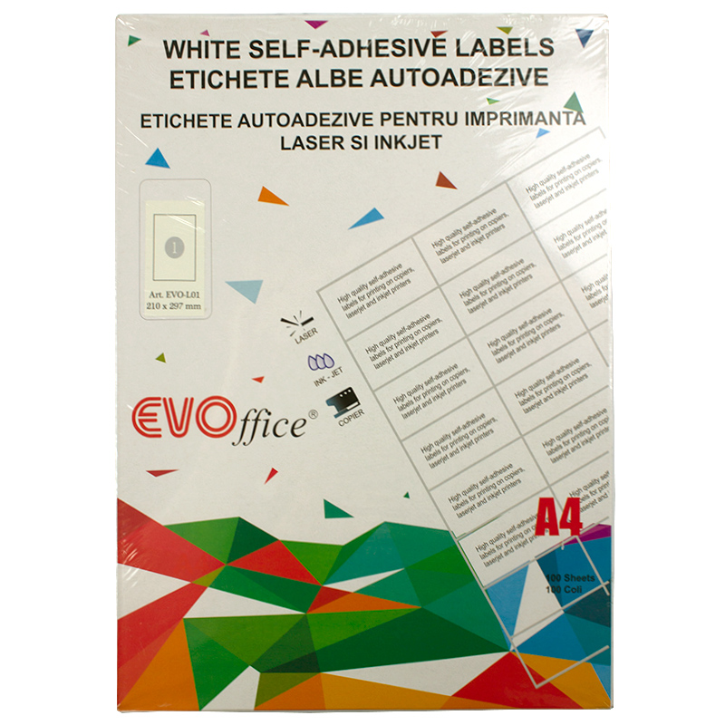 Etichete albe aa (autocolante) 210×297 mm pt imprimante A4 100 coli/top – colturi drepte 1/A4