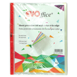 Folie protectie documente A4, cristal 50 micr, margine color, 100buc/set EVOffice