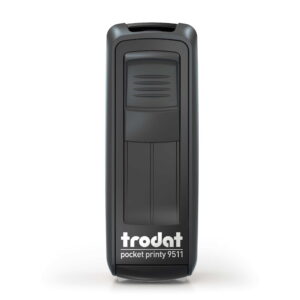 Stampila Trodat Pocket Printy 9511 dreptunghiulara, 38×14 mm, este un model de dimensiuni reduse, perfect pentru un suport de buzunar. Trodat Pocket Printy este un mecanism simplu si stabil cu un design modern, disponibila in diferite nuante de culori. Corpul stampilei este fabricat dintr-un material plastic rezistent și durabil, care îi conferă o greutate ușoară și o manevrabilitate bună. Mânerul ergonomic face poate folosi această ștampilă să fie ușoară și confortabilă pentru a evita oboseala mâinilor. Schimbarea tușierei este un procedeu extrem de simplu si poate fi realizata prin detasarea ghidajelor laterale de suport.
